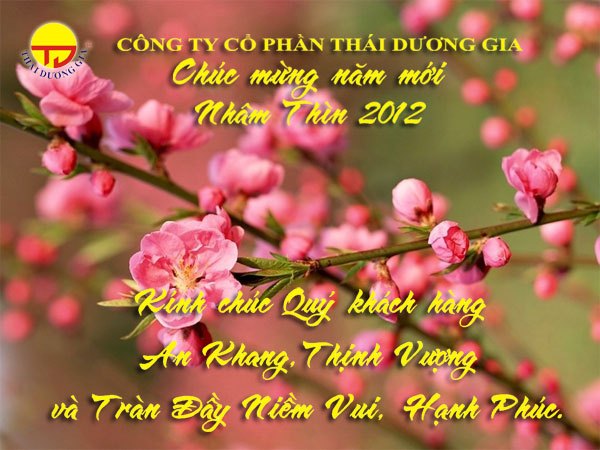Nhân dịp Năm mới xuân Nhâm Thìn, Công ty cổ phần Thái Dương Gia xin gửi tới Quý khách hàng cùng gia đình lời Chúc mừng Năm mới An Khang, Thịnh vượng và Tràn đầy Niềm vui, Hạnh Phúc. Xin chân thành cảm ơn Quý khách đã hợp tác, ủng hộ Thái Dương Gia trong suốt thời gian qua.