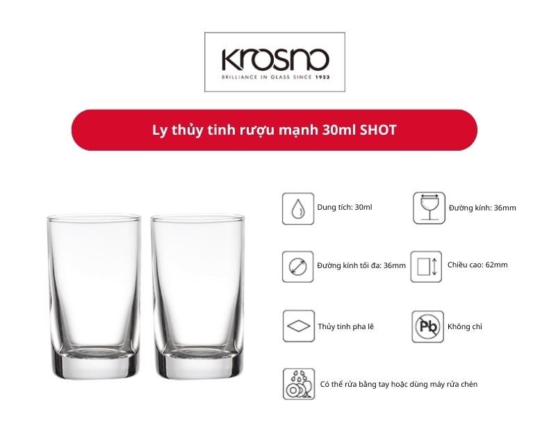 Tính năng của bộ 6 cốc, ly nhỏ shot rượu mạnh 30ml Ba Lan Krosno-789019