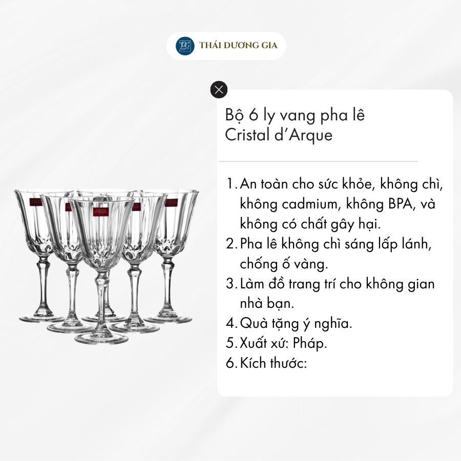 Để mua được (lọ hoa/ly/bát thả hoa) Cristal D’arques cao cấp nhập khẩu chính hãng và uy tín. Bạn nên đến cửa hàng Thái Dương Gia – nơi chuyên cung cấp các đồ gia dụng, đồ dùng nhà bếp đến từ các thương hiệu nổi tiếng với mẫu mã đa dạng, có sẵn tại cửa hàng. Tất cả các sản phẩm do Thái Dương Gia phân phối đều được kiểm định vệ sinh an toàn thực phẩm và giấy tờ CO, CQ để đảm bảo chất lượng trước khi nhập khẩu.