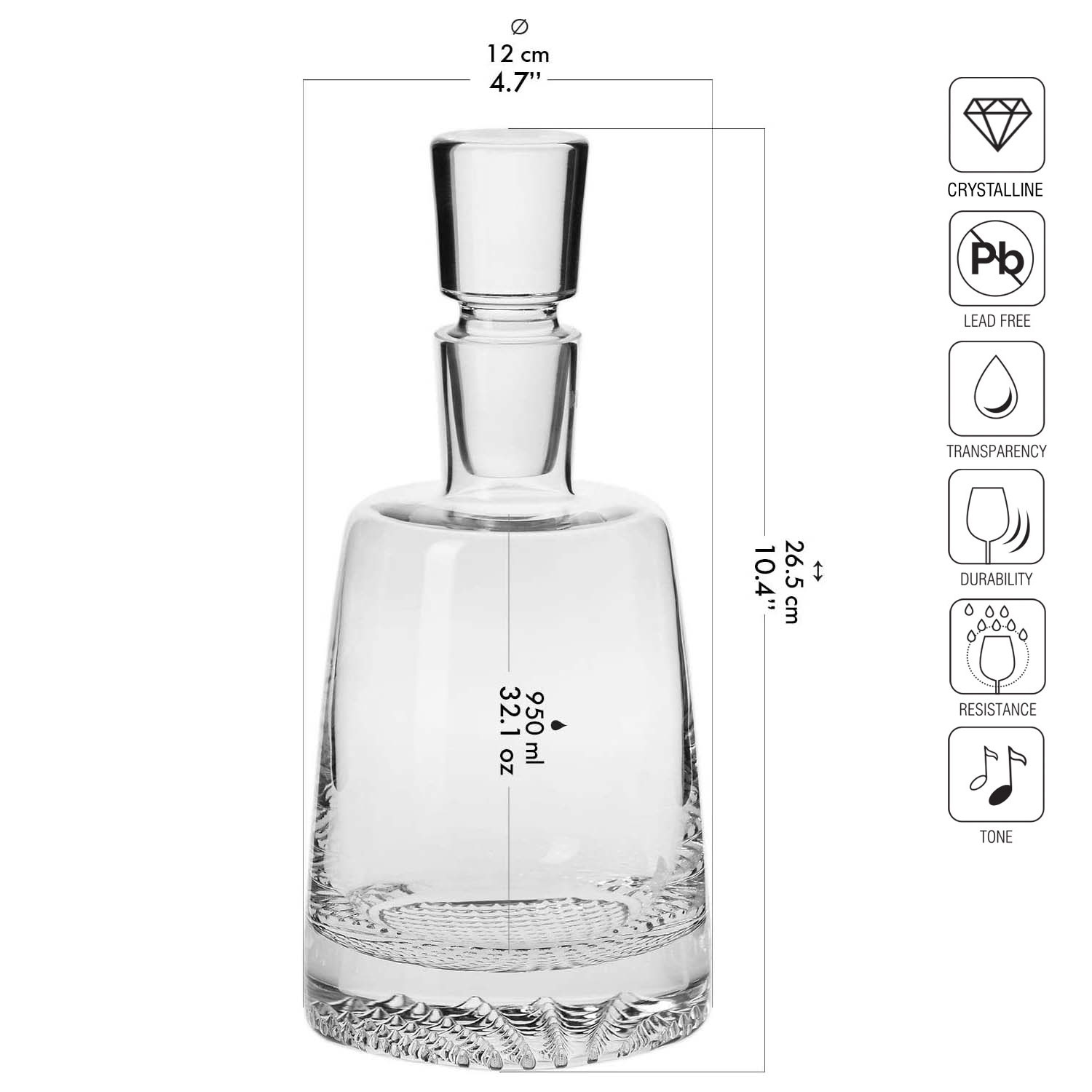 Một bình rượu hiện đại được sử dụng để gạn rượu chuyên nghiệp và cũng là một vật trang trí đầy phong cách cho bất kỳ bàn tiệc, quầy bar và tủ trưng bày nào. Hình dạng không chỉ đẹp mà còn thực dụng. Thiết kế cho phép chất lỏng lưu thông tự do bên trong bình. Rượu được rót ra từ bình gạn được tiếp xúc với oxy một cách thích hợp. Từ đó, hương vị và hương thơm của rượu được bộc lộ đầy đủ, trở thành một bữa tiệc thực sự cho các giác quan. Bình rượu của Krosno là một sản phẩm sẽ đáp ứng được sự mong đợi của cả những người sành sỏi khó tính nhất. Hình dạng lạ mắt kèm pha lê không chì trong suốt hoàn hảo, tạo ra hiệu ứng phản xạ ánh sáng độc đáo làm nổi bật màu sắc quý phái của rượu. Bình có khả năng chống trầy xước, hoen ố và các hư hỏng cơ học khác.