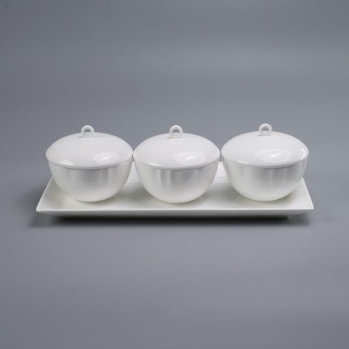 Tính năng của bộ khay chữ nhật và 3 bát tròn có nắp đựng mứt, ô mai Tết trắng sứ tro xương Hàn Quốc