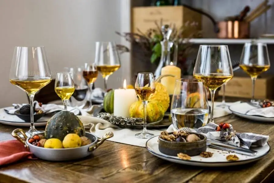 Ly rượu vang trắng: Thường đứng bên cạnh ly rượu vang đỏ trong bất kỳ sự sắp xếp nào.