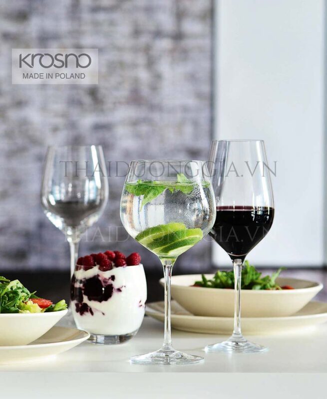 Ly vang pha lê Elite 450ml – Các đường nét thon gọn mang lại cho nó một cảm giác hiện đại, sắc nét. Dòng sản phẩm này được phân biệt bởi tính linh hoạt cũng như chất lượng của nó. Chất liệu pha lê sáng lấp lánh của Krosno khi được sử dụng ở quán bar hay trên bàn ăn tối cũng không kém phần lộng lẫy.