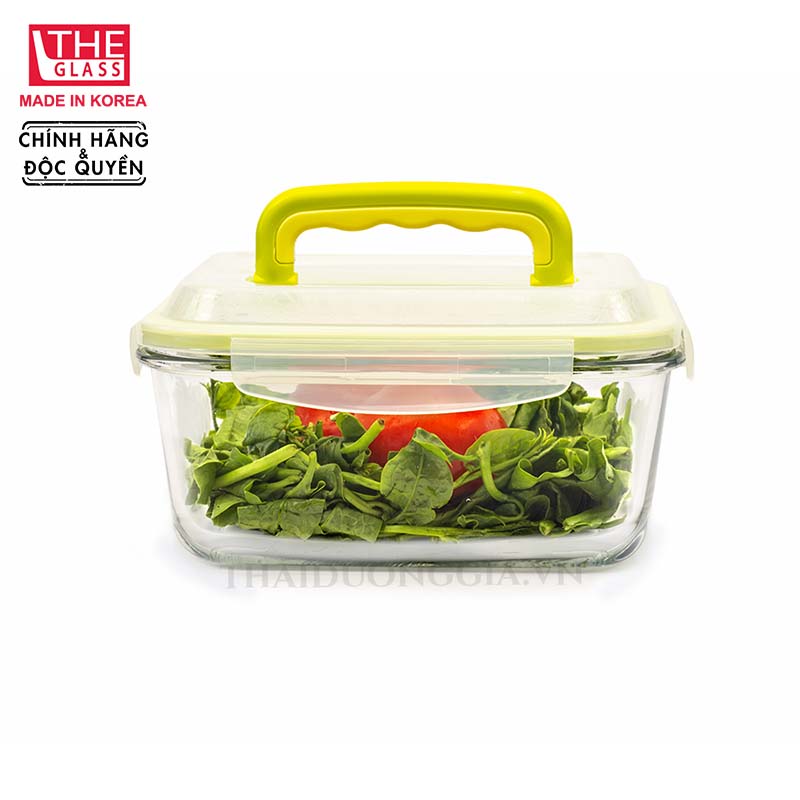Hộp đựng thực phẩm chữ nhật có quai xách 1800ml Hàn Quốc The Glass