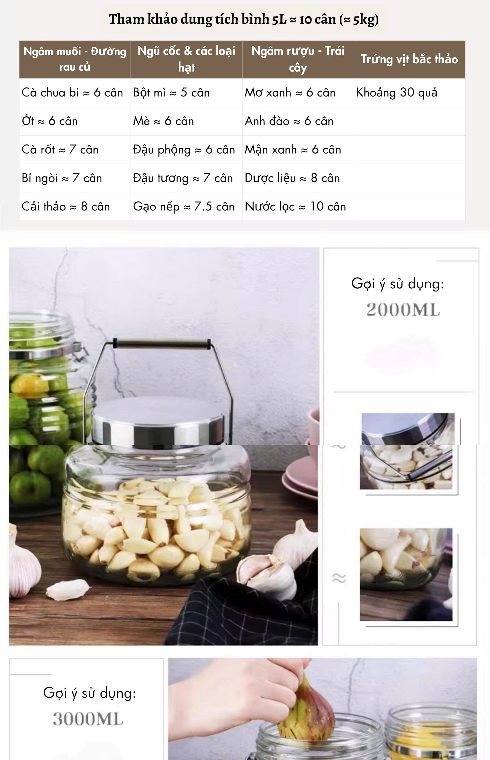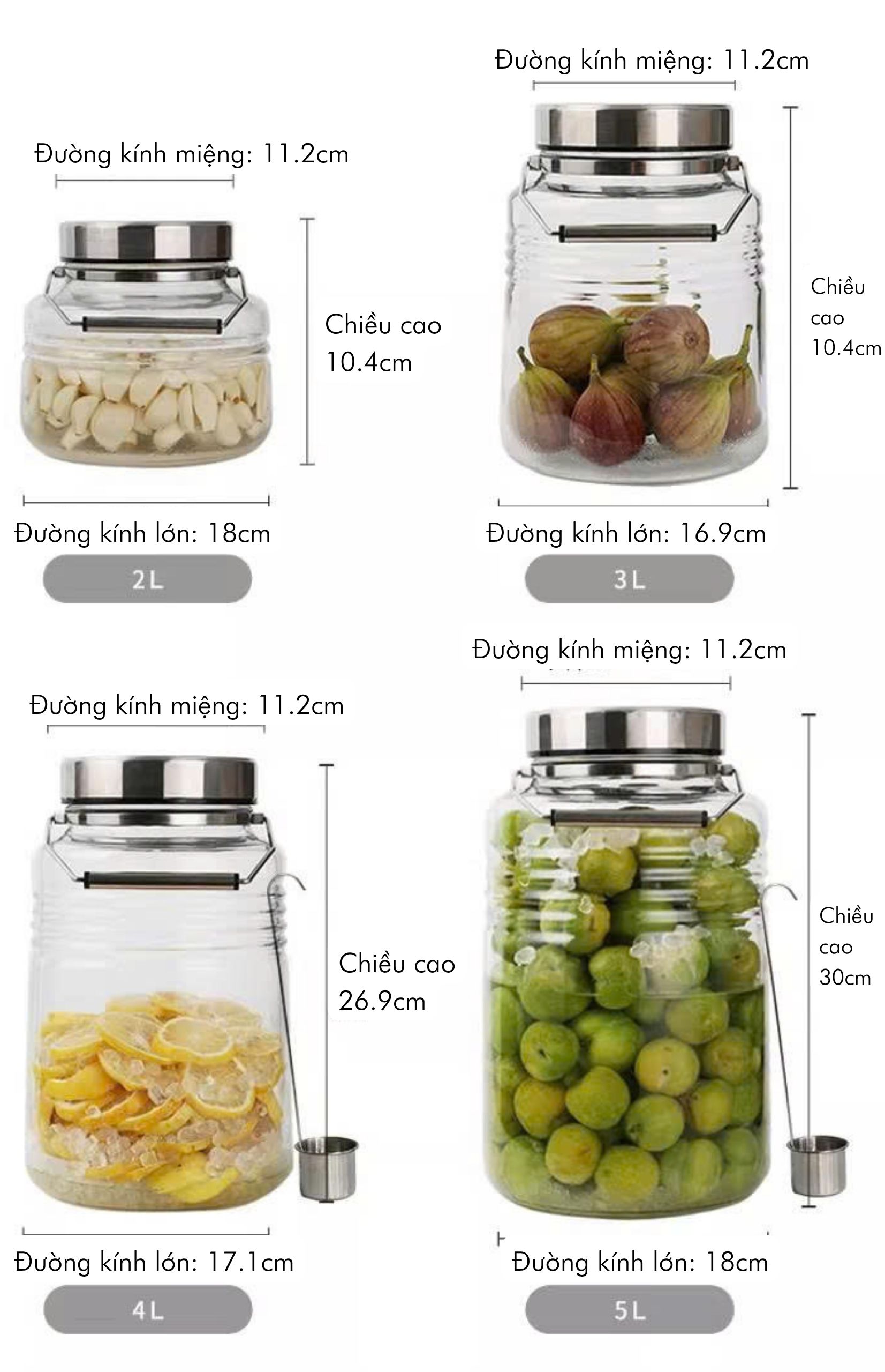 ĐA NĂNG: Lọ, bình thủy tinh ngâm, đựng thực phẩm Aderia dùng để ngâm và tích trữ được các loại rượu, nước hoa quả lên men, mật ong, muối đồ chua, v.v… để lâu dài.