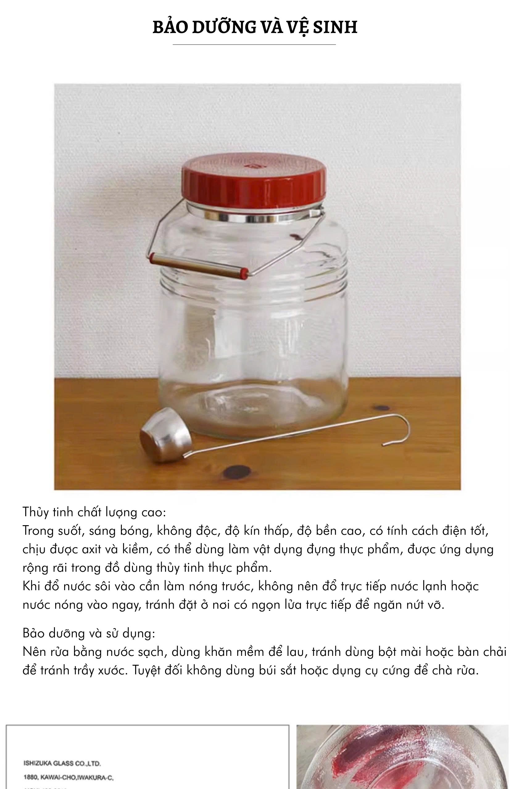 Tính năng của Lọ, bình thủy tinh ngâm, đựng thực phẩm, nắp mạ niken có muôi múc Nhật Bản Aderia