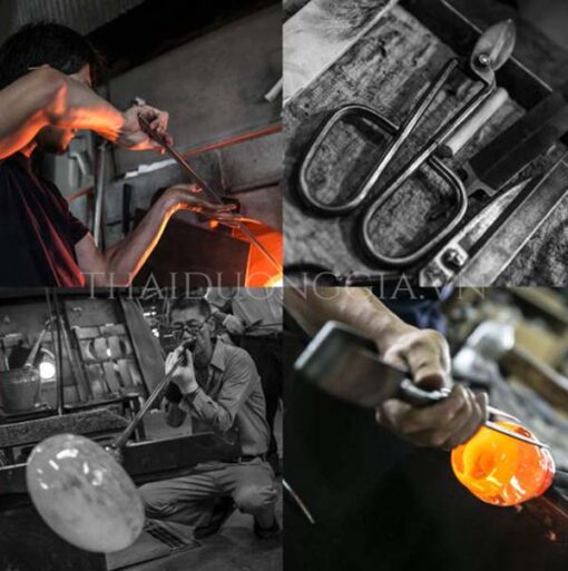 KỲ CÔNG: Các nghệ nhân thủy tinh tâm huyết đã dành rất nhiều năm, thậm chí cả tuổi trẻ cho việc nghiên cứu và phát triển. Họ cố gắng nắm vững các kỹ thuật và phương pháp mới đòi hỏi công nghệ tiên tiến để pha trộn thủy tinh màu đẹp mà chủ yếu là thông qua quá trình tự học và tự chỉ dạy lẫn nhau. Mỗi sản phẩm của Tsugaru Vidro được sinh ra trong nhiệt độ 1500ºC đỏ rực của lò nung. Các nghệ nhân hoàn thiện từng tác phẩm với độ mịn mà chỉ có thể đạt được bằng cách sử dụng que thổi với kỹ năng và sự tỉ mẩn, tinh tế. Họ sử dụng vàng thật nên không bị phai, không bong tróc.
