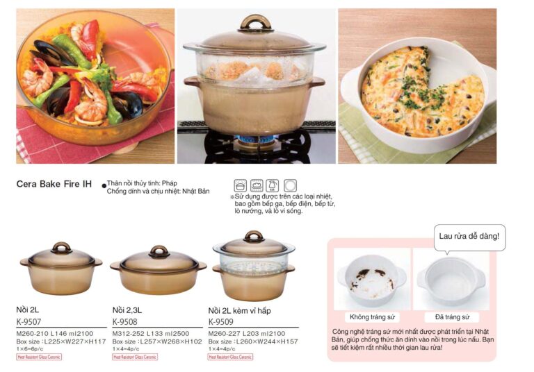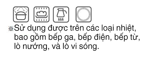 1. Sử dụng được trên bếp từ, bếp ga, bếp điện, lò vi sóng, và lò nướng.
